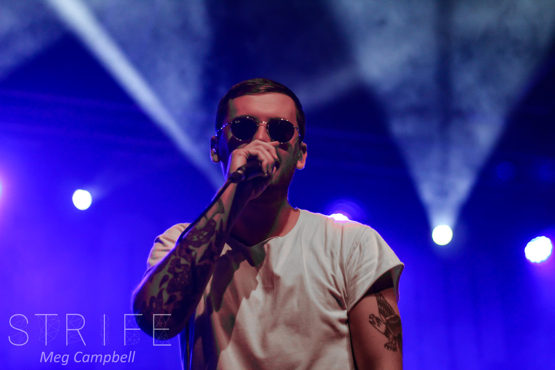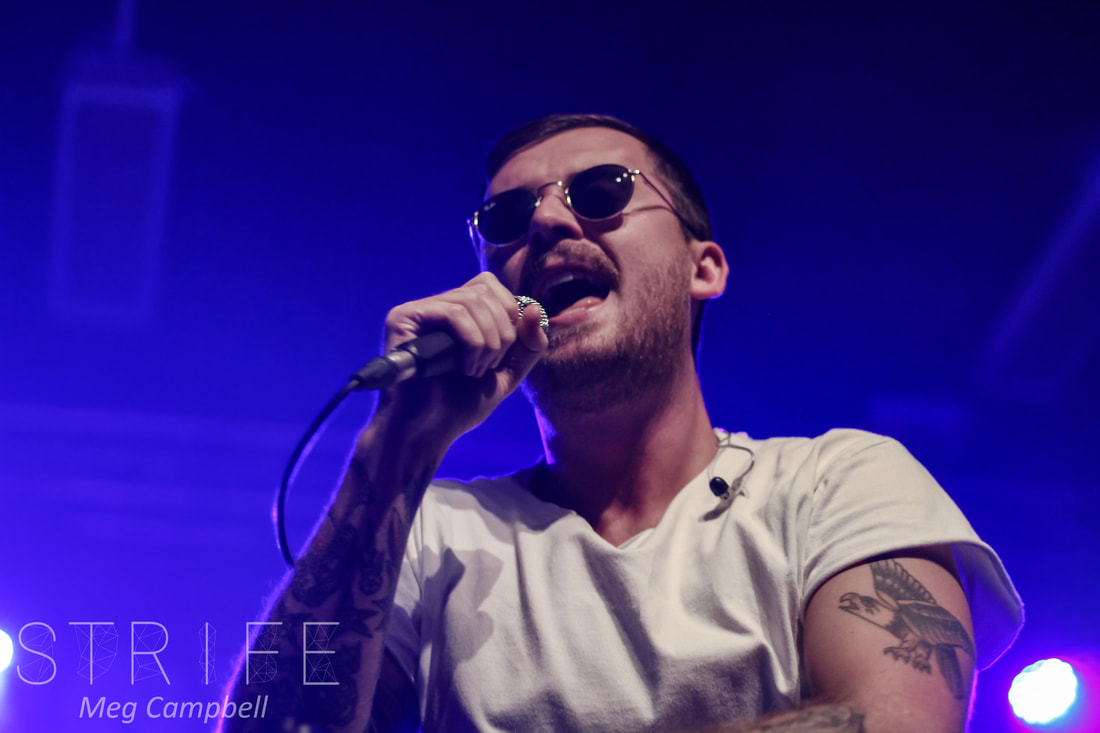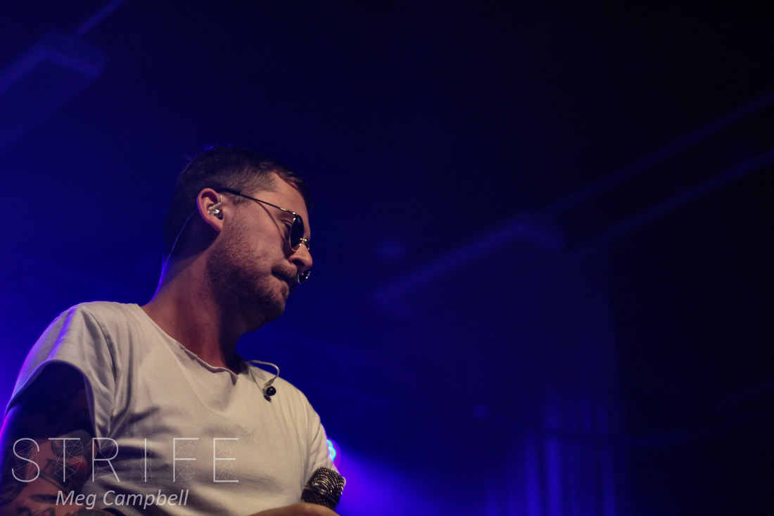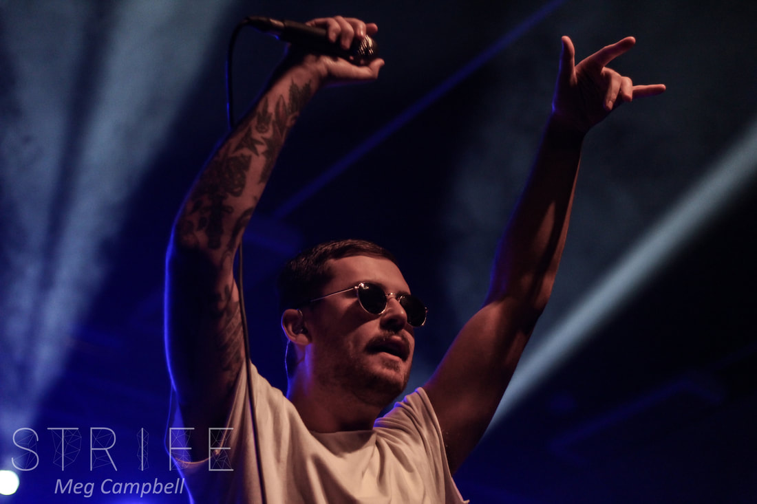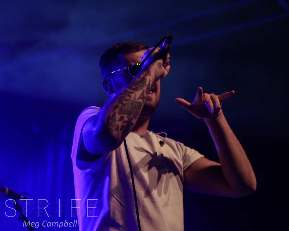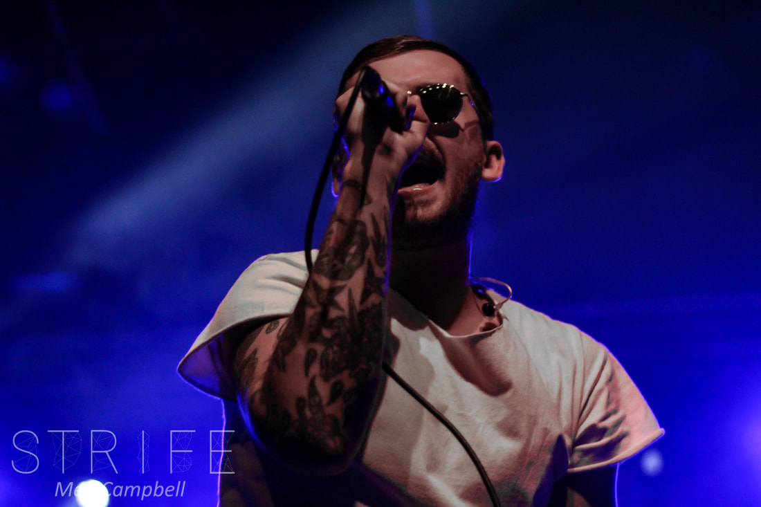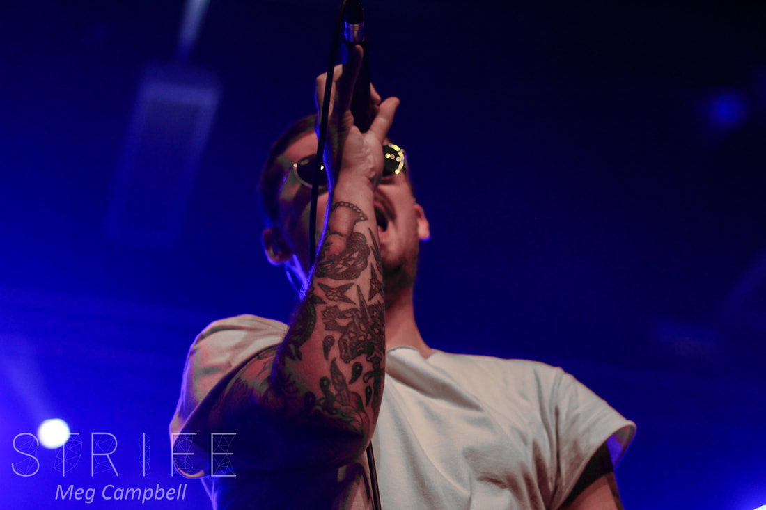 Next came Stand Atlantic who had an established presence in the room through fans who had brought signs, flags, and even gifts for the Australian band. Led by Bonnie Fraser, this band gave further proof that girls can play just as well and hard as any guy. The room was hooked into their emotive performances which were carried out skilfully while remaining passionate and exciting. There’s the disadvantage of having a microphone and guitar keeping your front person less mobile than would be preferred, but the energy from Fraser’s performance combined with the enthusiastic performances by David Potter (bass) and Jonno Panichi (drums) triumphed over chain between the mic stand and vocalist. While watching I felt such a powerful, genuine energy coming from the trio which me feel (as a music lover and a lady) just a little bit stronger and more empowered than I did when first walking into the room.