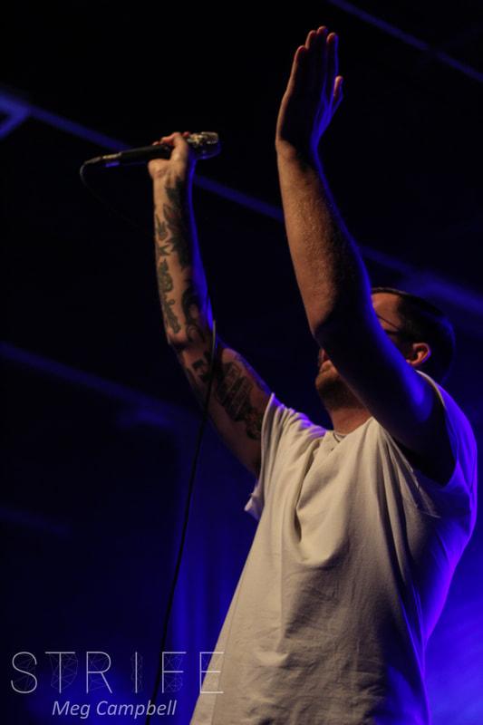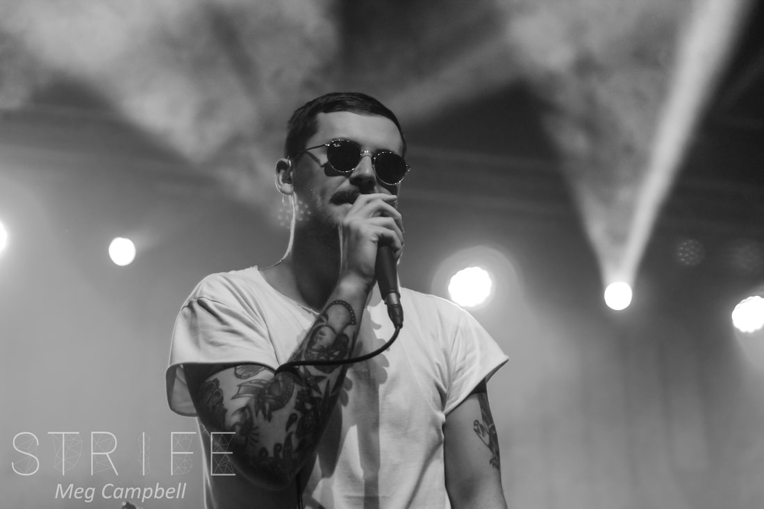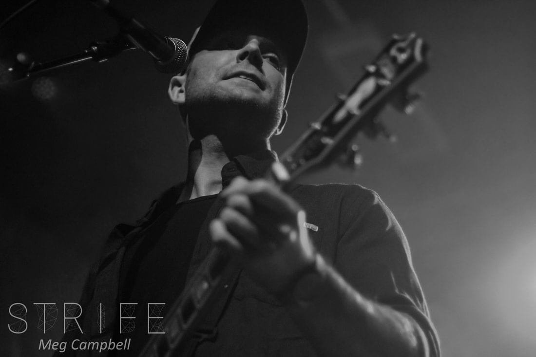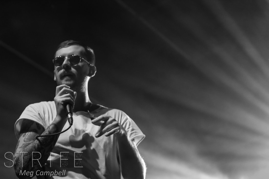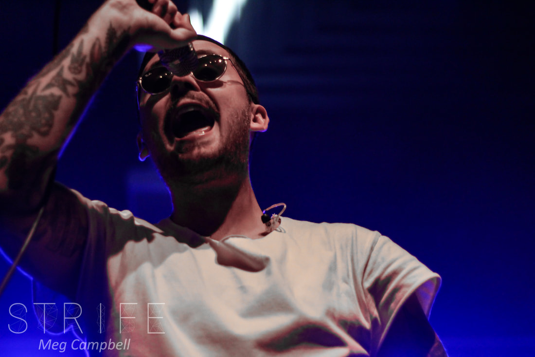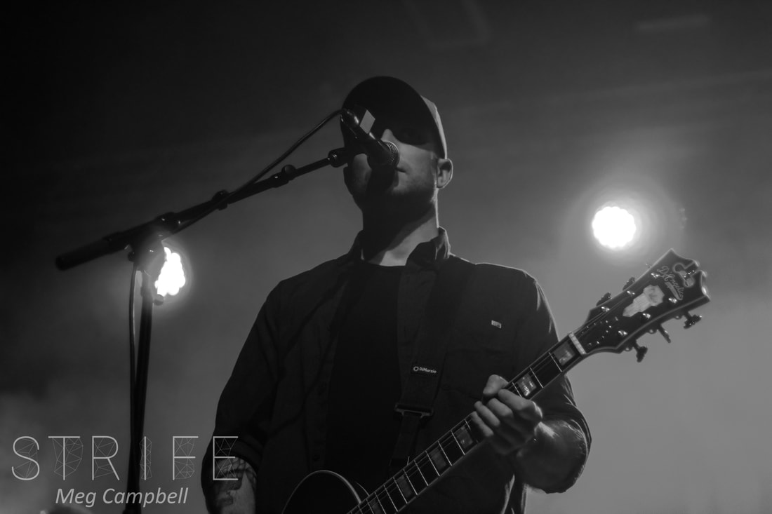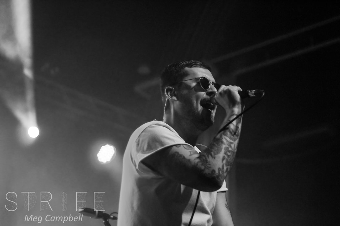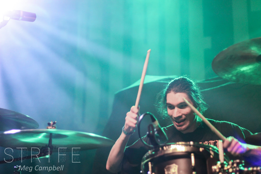 Next came Stand Atlantic who had an established presence in the room through fans who had brought signs, flags, and even gifts for the Australian band. Led by Bonnie Fraser, this band gave further proof that girls can play just as well and hard as any guy. The room was hooked into their emotive performances which were carried out skilfully while remaining passionate and exciting. There’s the disadvantage of having a microphone and guitar keeping your front person less mobile than would be preferred, but the energy from Fraser’s performance combined with the enthusiastic performances by David Potter (bass) and Jonno Panichi (drums) triumphed over chain between the mic stand and vocalist. While watching I felt such a powerful, genuine energy coming from the trio which me feel (as a music lover and a lady) just a little bit stronger and more empowered than I did when first walking into the room.