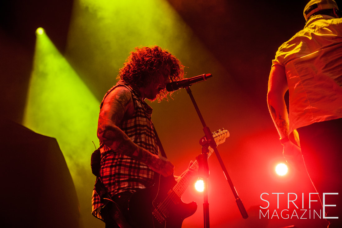 Bullet For My Valentine didn’t come empty handed, as they had quite the stage set-up with them. A massive wall of stage lightning, spotlights, a massive “Gravity” banner, and even what appeared to be a custom made BFMV carpet graced the stage.
