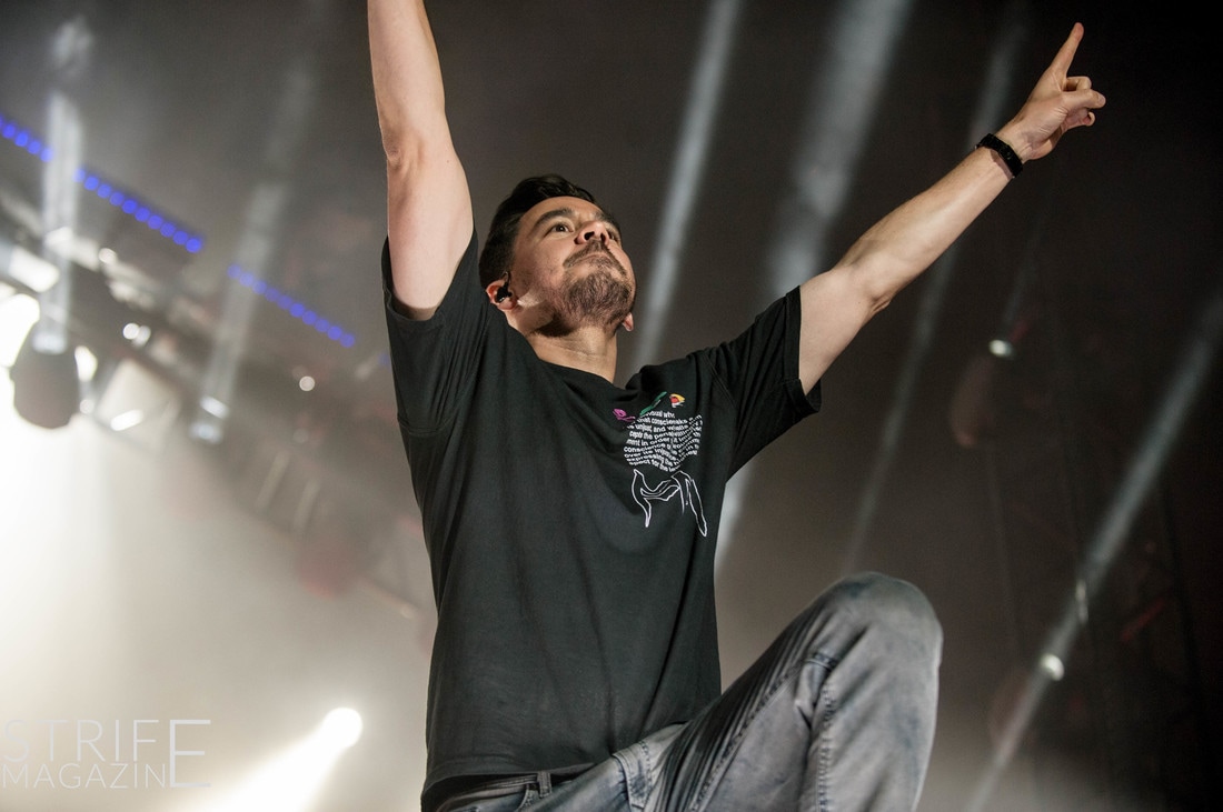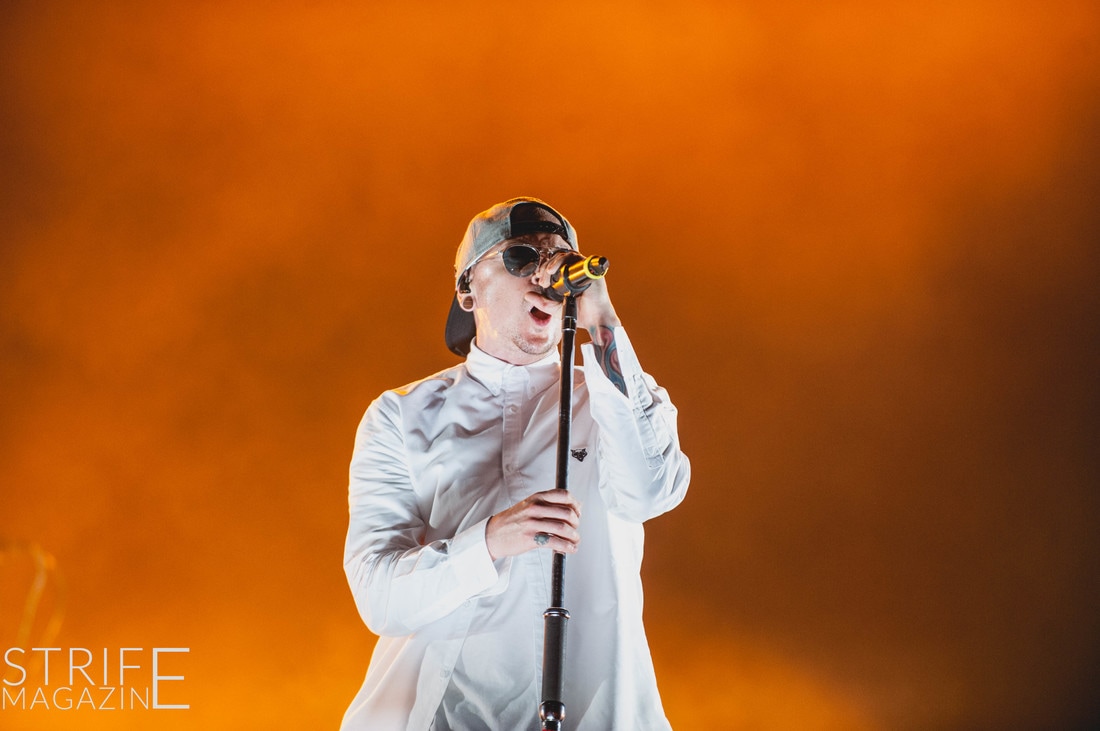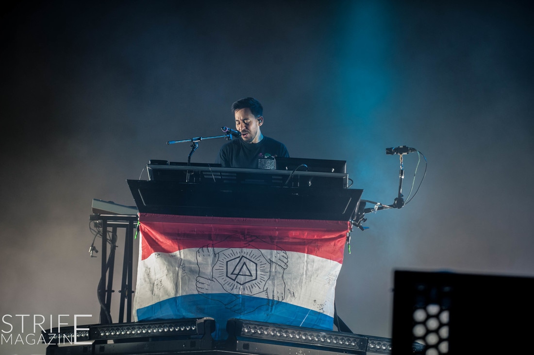 After a brief depart, Linkin Park got back on stage to perform albumcloser ‘Sharp Edges’, or well, an acoustic rendition of this particular track. This was followed by some of the biggest hits the band has had such as ‘Numb’, ‘Heavy’, ‘Papercut’ & last but definitely not least ‘Bleed It Out’. While the moshpit whirled all night long, the size of it was a massive downgrade to the last time they paid a visit to the Amsterdam Ziggo Dome. On the Hunting Party tour, Linkin Park had a massive backdrop and a futuristic set-up on stage, while this time around the only effects they brought along was some balloons dropping to the floor at the last track ‘Bleed It Out’. While this didn’t make or break the performance, it was a bit of a disappointment taken the massive production we’ve seen the band bring last time. Either way, it was a night filled with great diversity, stellar performances and all-in-all a succesful show. Linkin Park are worthy of the sold-out Ziggo Dome they performed in.