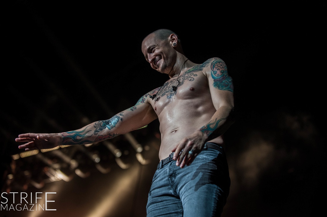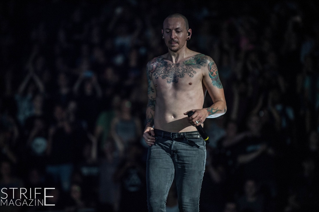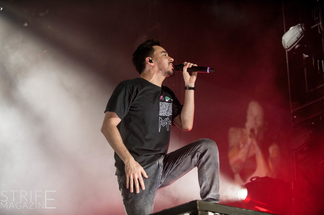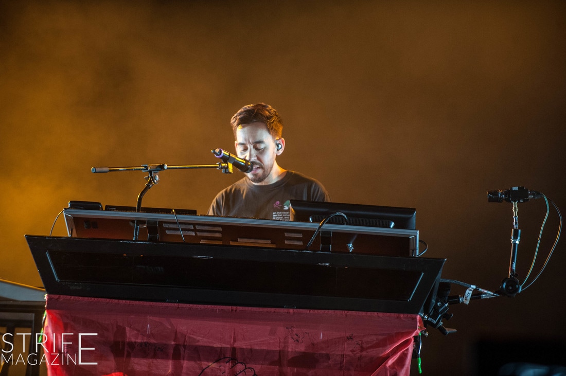 A few minutes before the show, the audience was instructed to record their performance of ‘Talking To Myself’ in full and upload it onto a website given by the band. They would use the footage for a live music video for the track. Anyway, ‘Talking To Myself’ marked the beginning to a set of great diversity, creativity and quite frankly brilliance. Linkin Park left no stone unturned for their 2-hour lasting set and tracks from all era’s were being performed. Soft tracks from the brand new record ‘One More Light’ were quickly followed by heavy old tracks such as ‘One Step Closer’ and ‘Breaking The Habit’.