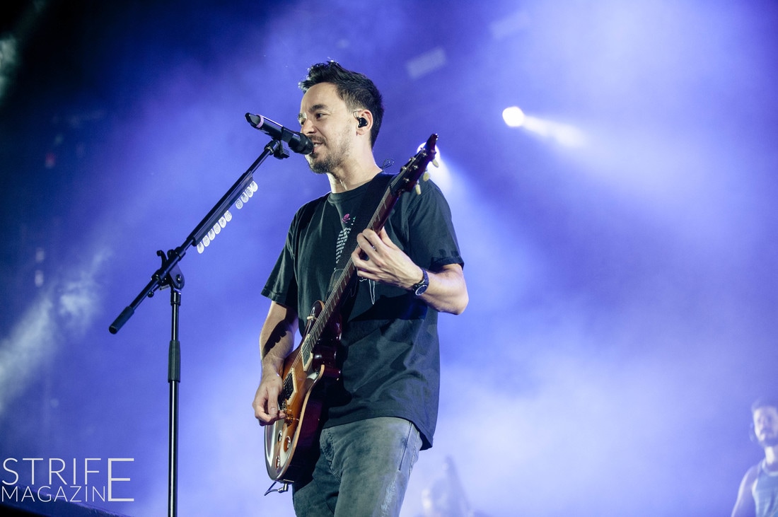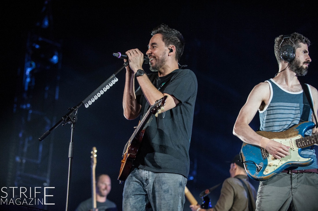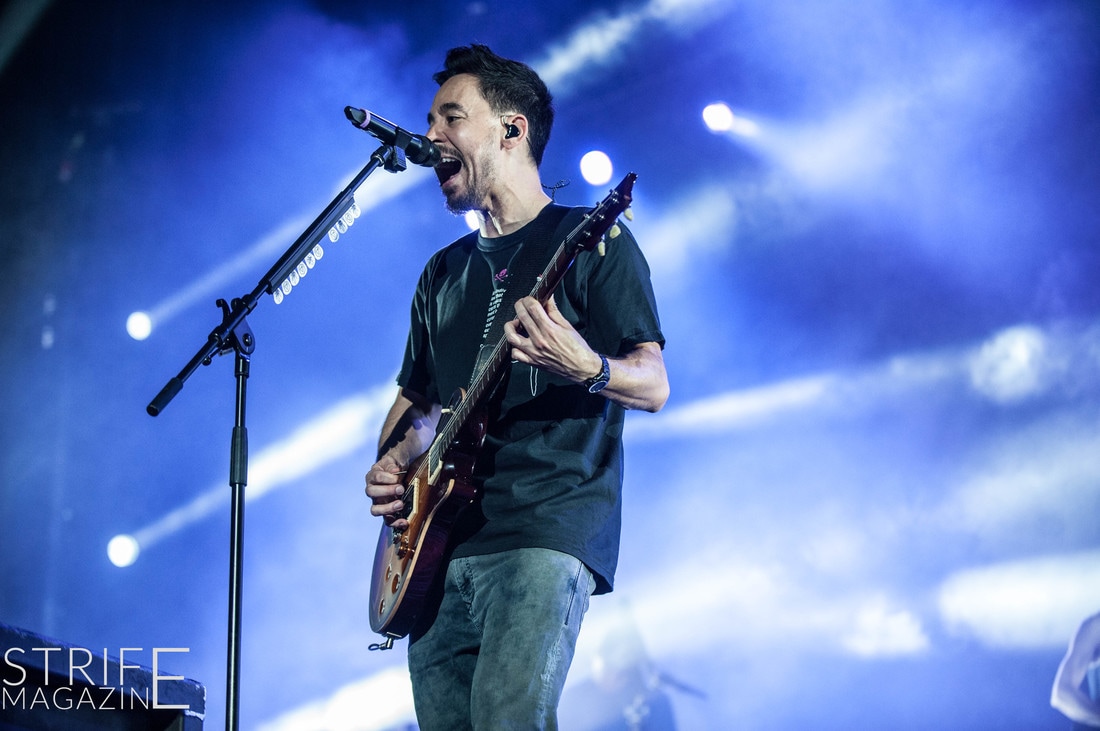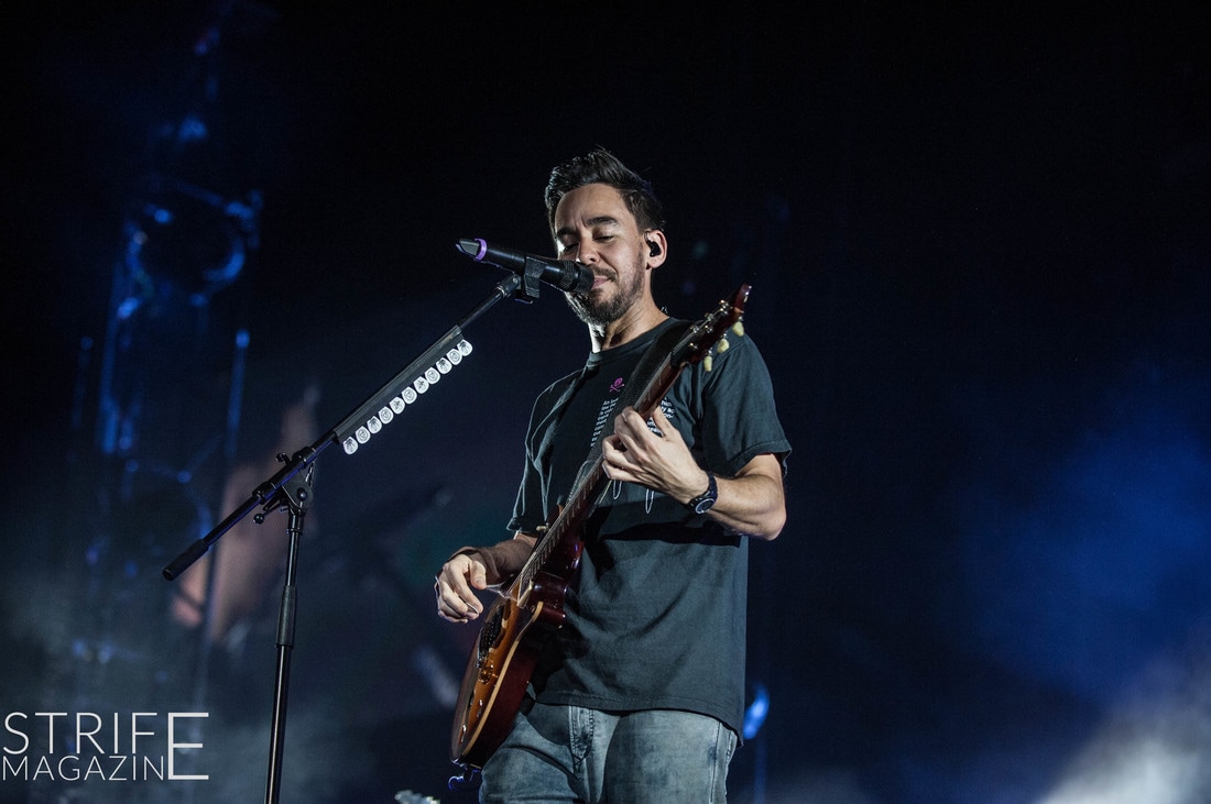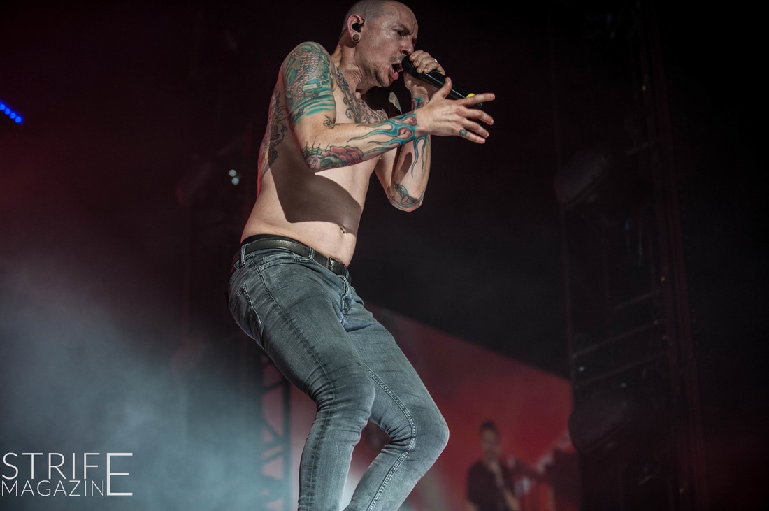 A few minutes before the show, the audience was instructed to record their performance of ‘Talking To Myself’ in full and upload it onto a website given by the band. They would use the footage for a live music video for the track. Anyway, ‘Talking To Myself’ marked the beginning to a set of great diversity, creativity and quite frankly brilliance. Linkin Park left no stone unturned for their 2-hour lasting set and tracks from all era’s were being performed. Soft tracks from the brand new record ‘One More Light’ were quickly followed by heavy old tracks such as ‘One Step Closer’ and ‘Breaking The Habit’.