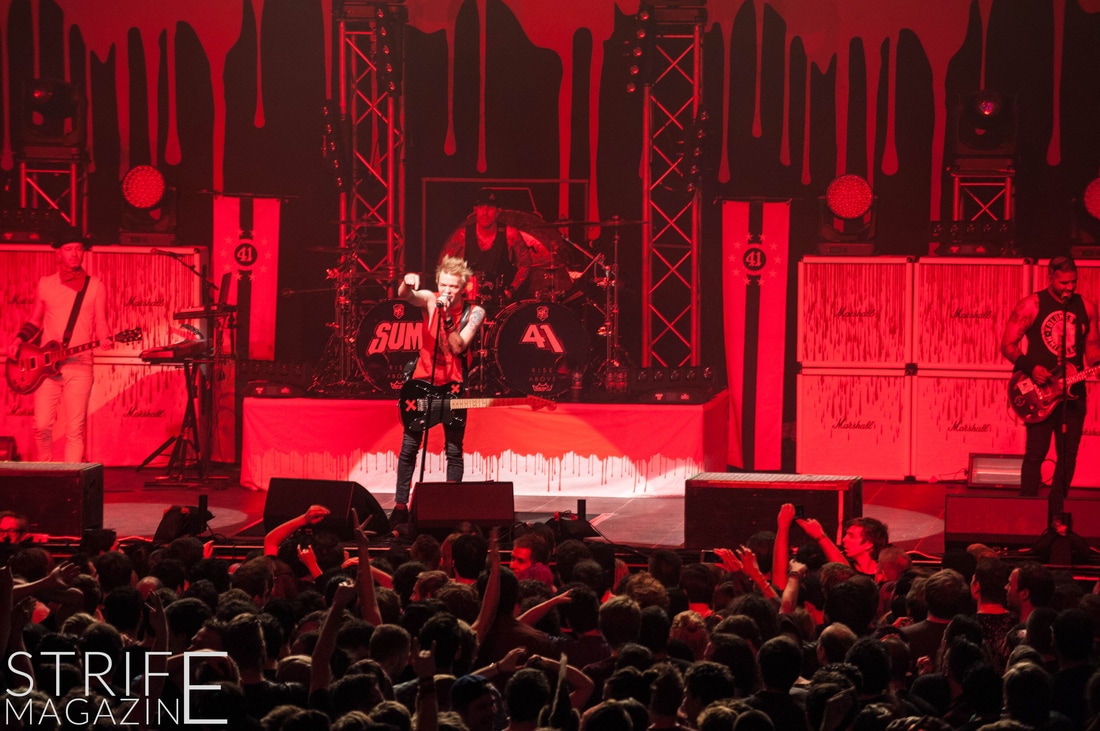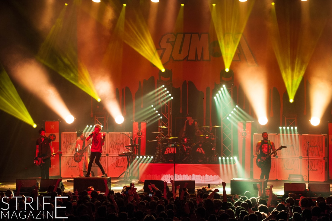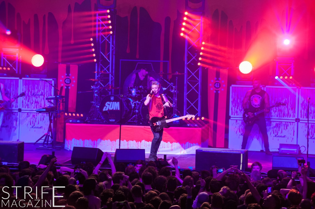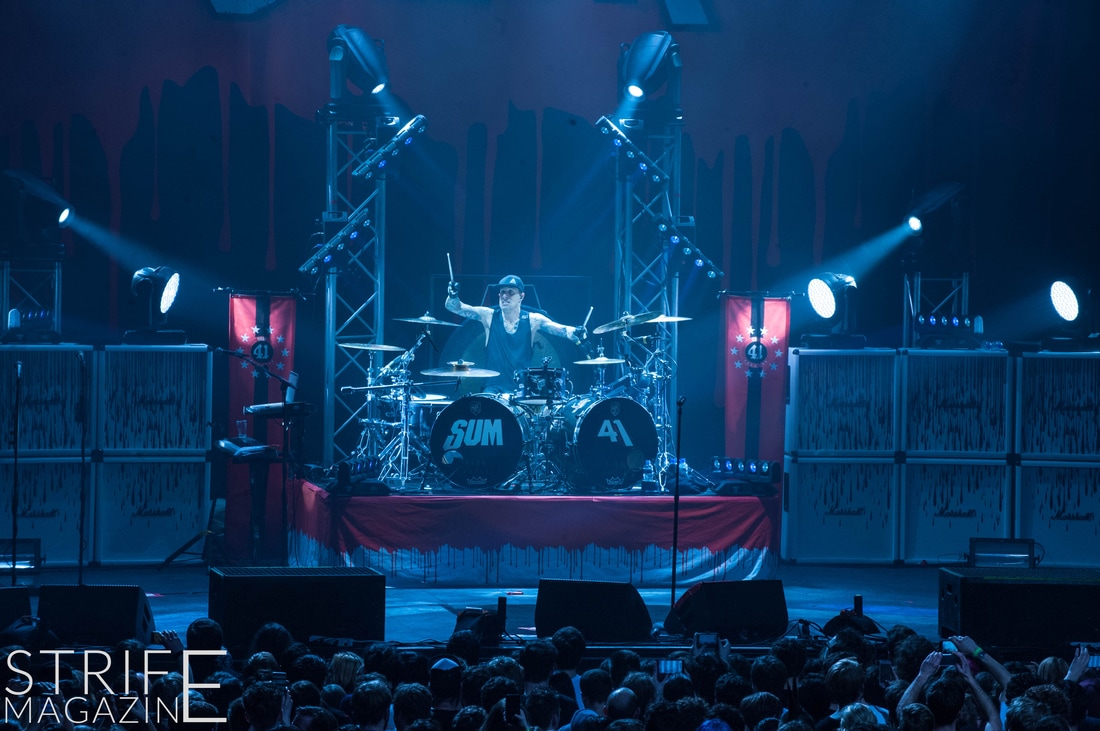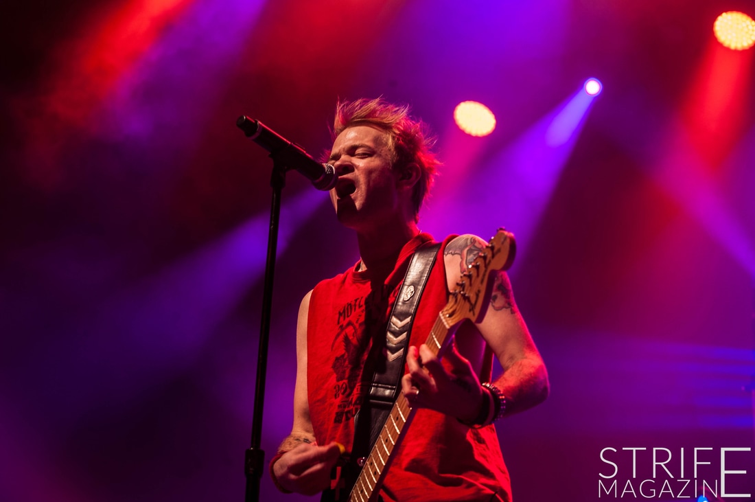 New drummer Frank Zummo was also given the opportunity to win the fans over with his killer drumsolo which occured right after the stellar performance of yet another new track ‘The Fall And Rise’. This was followed by a track taken from the band’s slightly heavier album Chuck: ‘No Reason’. To switch things up a bit, Sum 41 took it upon themselves to cover the rock anthem by Queen ‘We Will Rock You’. This quickly preceded into two of the biggest tracks Sum 41 have released in their 20 years as a band: ‘Still Waiting’ and ‘In Too Deep’.