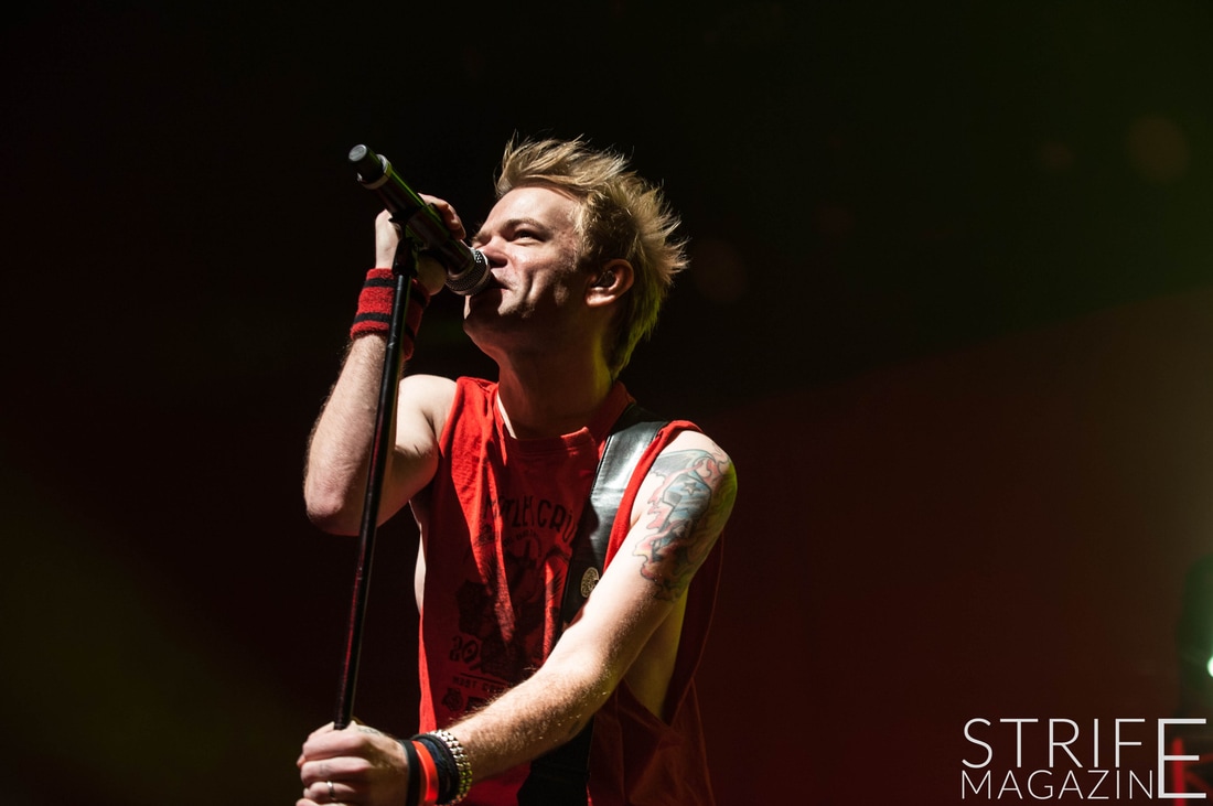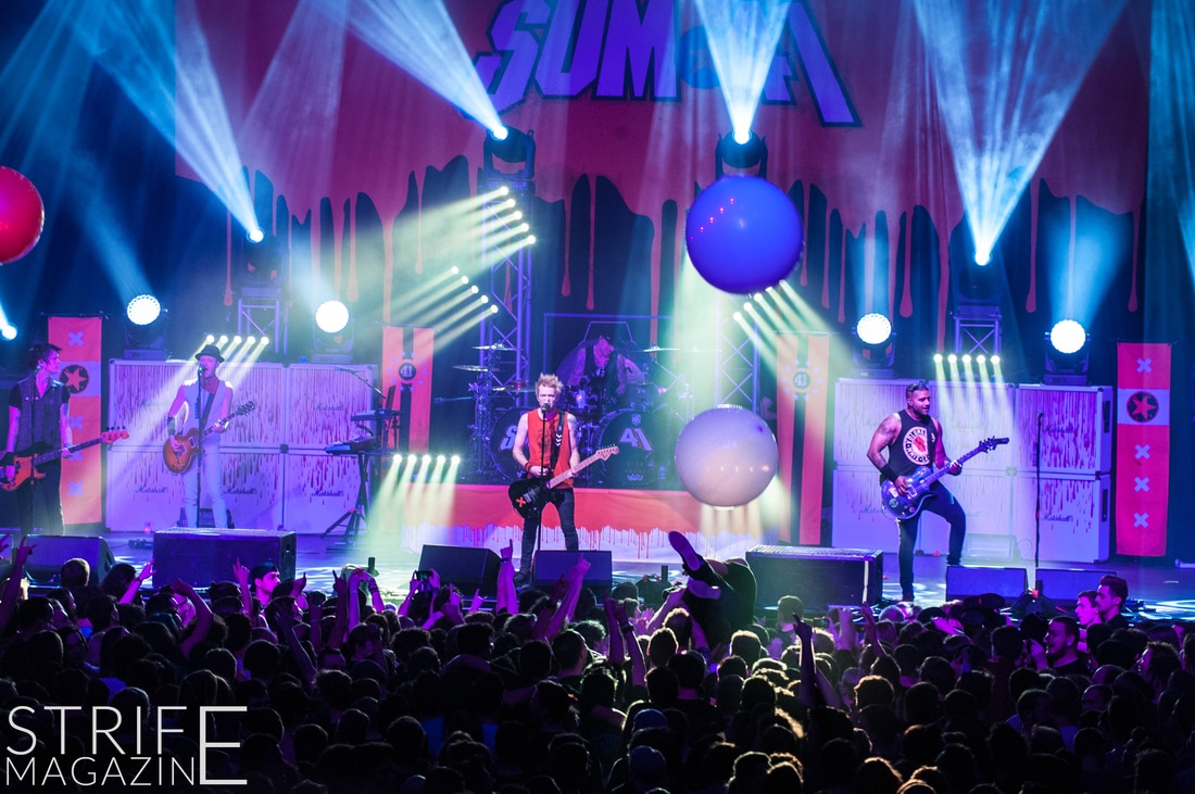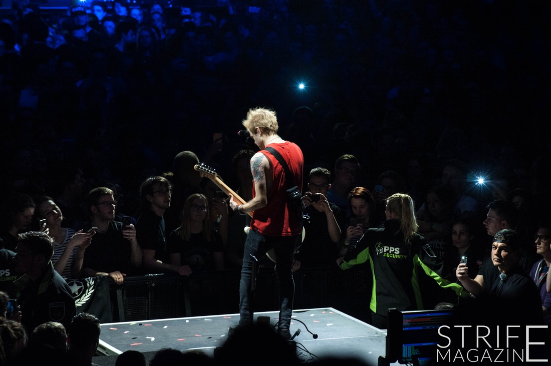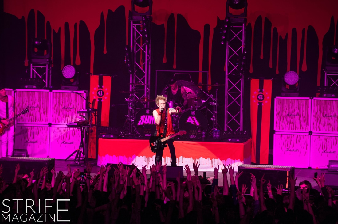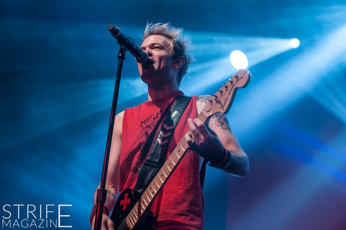 New drummer Frank Zummo was also given the opportunity to win the fans over with his killer drumsolo which occured right after the stellar performance of yet another new track ‘The Fall And Rise’. This was followed by a track taken from the band’s slightly heavier album Chuck: ‘No Reason’. To switch things up a bit, Sum 41 took it upon themselves to cover the rock anthem by Queen ‘We Will Rock You’. This quickly preceded into two of the biggest tracks Sum 41 have released in their 20 years as a band: ‘Still Waiting’ and ‘In Too Deep’.