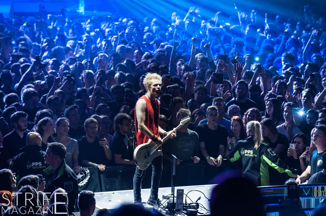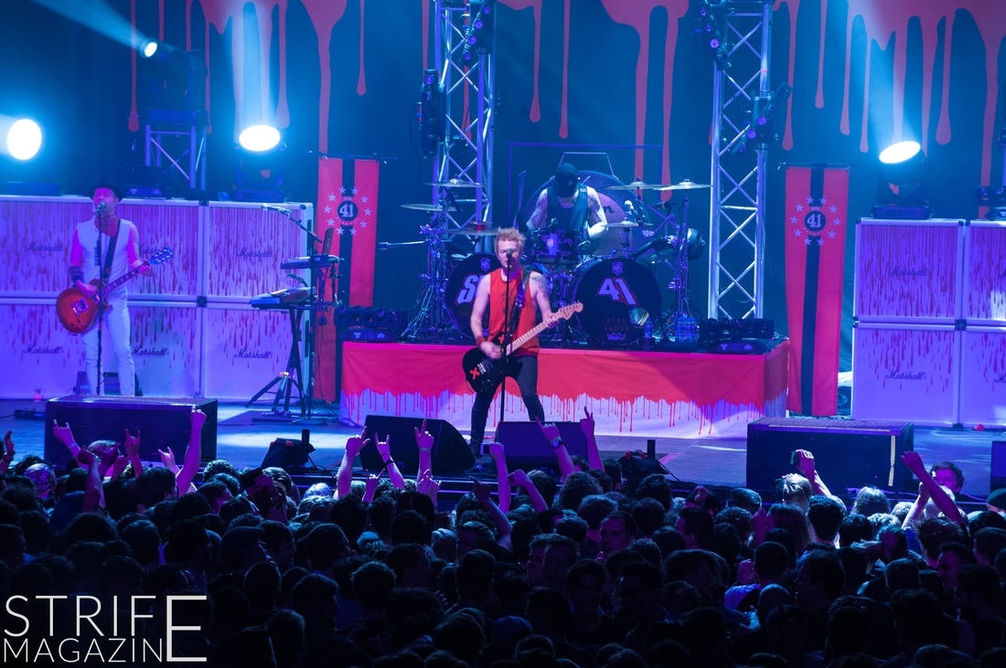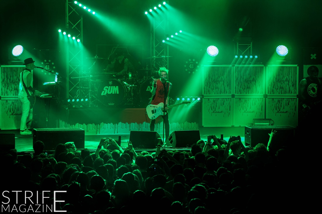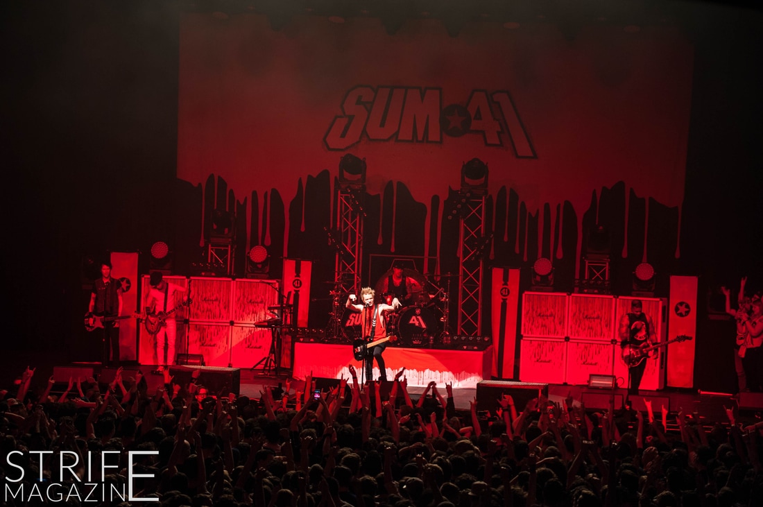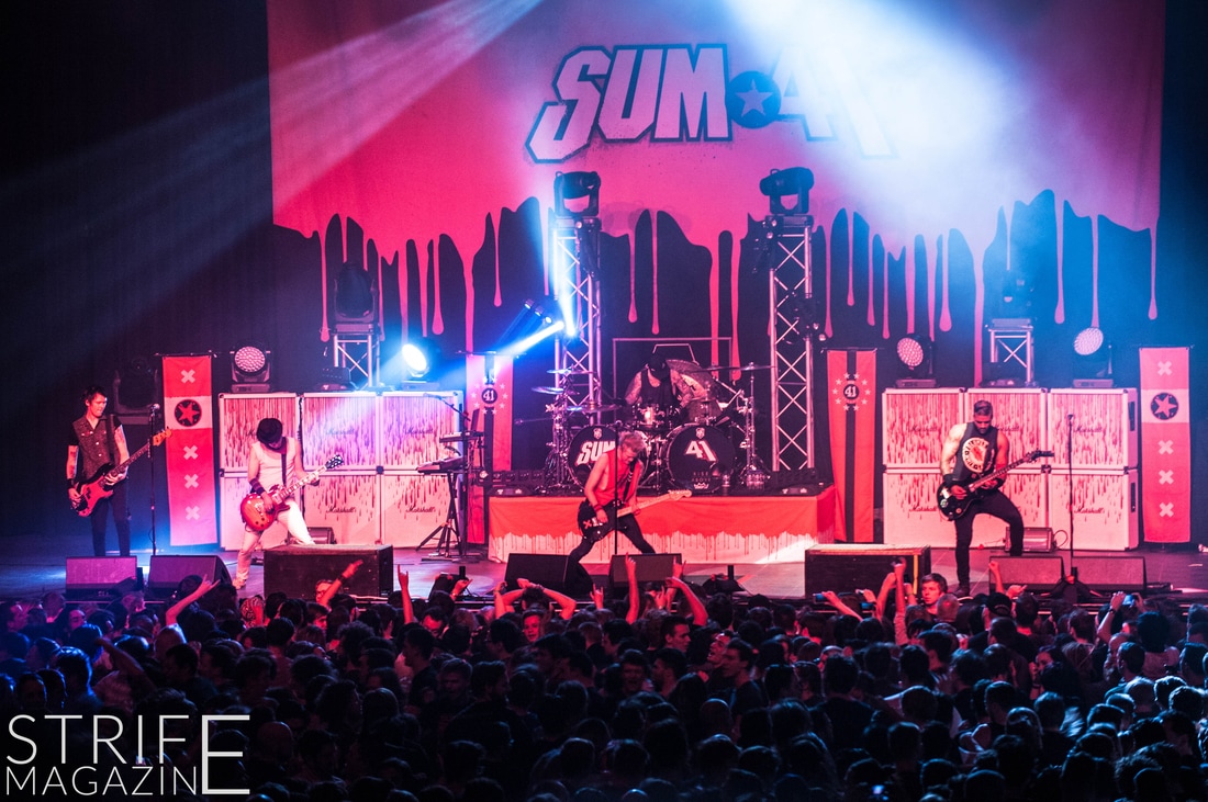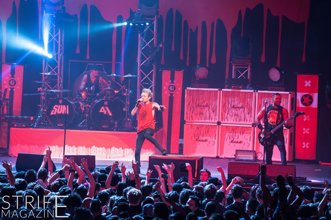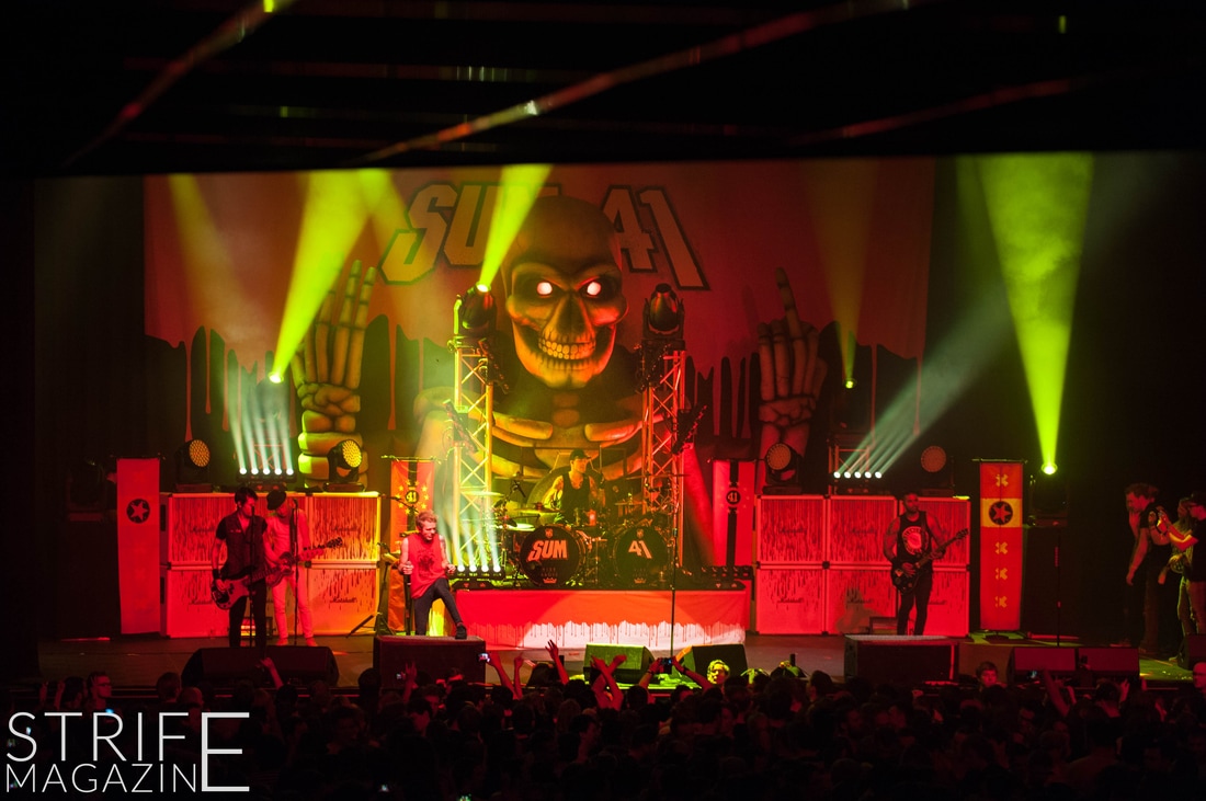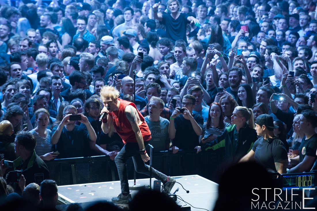Sum 41 took their highly anticipated, long awaited album ’13 Voices’ to the European road to play a few of the biggest venues they’ve played all across Europe in their 20 year spanning career. Sum 41’s latest Dutch stop occured right before they announced the plans for their album ’13 Voices’ on which they played a rather small show for Sum 41 standards. While that was just a show to announce they’re back, this tour was a massive upgrade production wise on which they also had a huge amount of brand new tracks to perform live in front a sold out (in less than a day) crowd that was rowdier than ever. The band came out swinging like never before with a line-up consisting of 3 guitarists, new drummer Frank Zummo and of course Cone McCaslin on the bass, delivering exactly what you’d expect and want from the punkrockers at this point.
