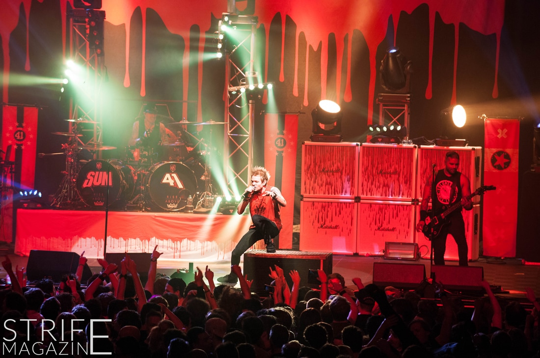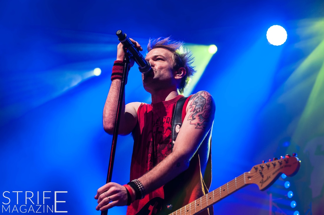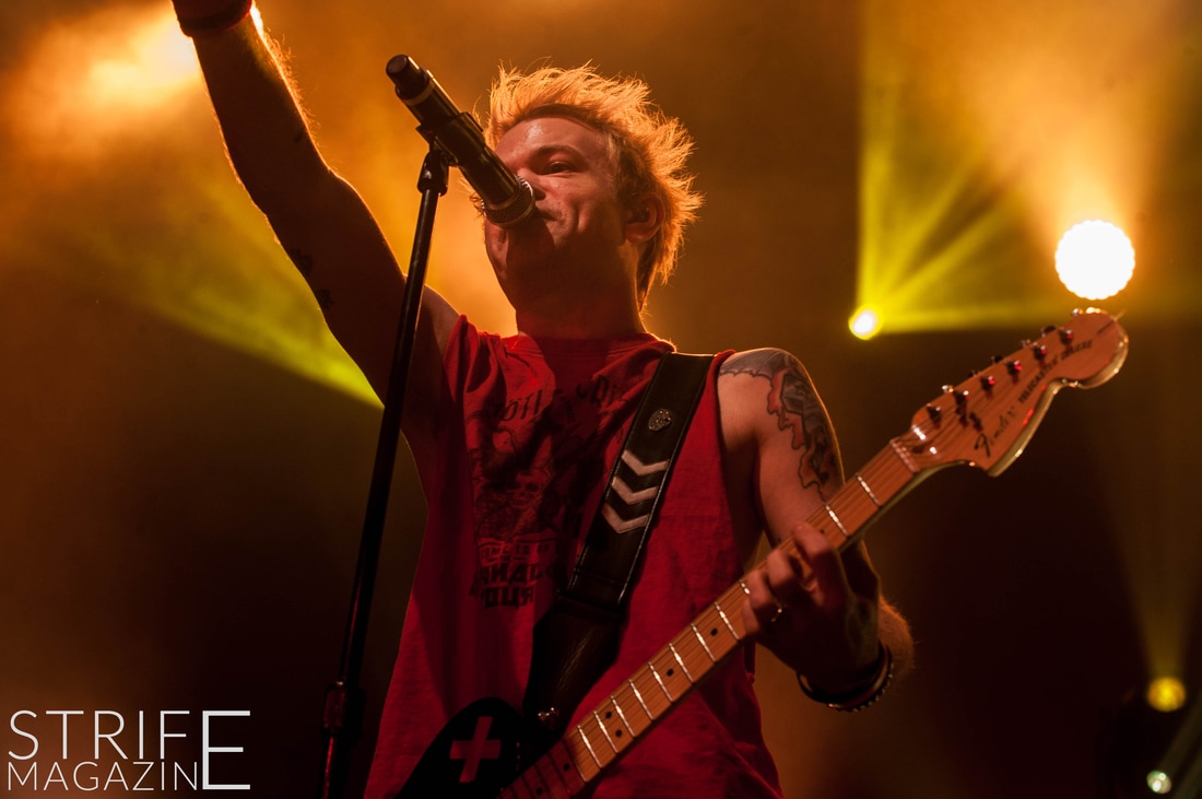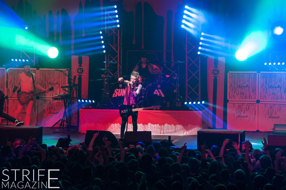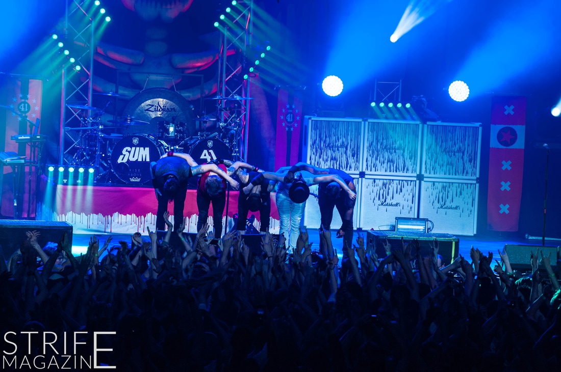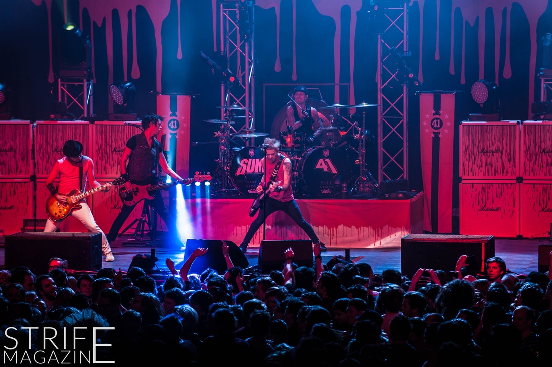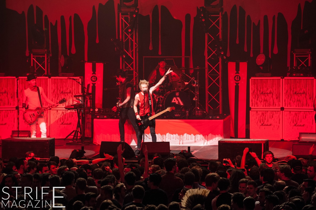 Sum 41 took their highly anticipated, long awaited album ’13 Voices’ to the European road to play a few of the biggest venues they’ve played all across Europe in their 20 year spanning career. Sum 41’s latest Dutch stop occured right before they announced the plans for their album ’13 Voices’ on which they played a rather small show for Sum 41 standards. While that was just a show to announce they’re back, this tour was a massive upgrade production wise on which they also had a huge amount of brand new tracks to perform live in front a sold out (in less than a day) crowd that was rowdier than ever. The band came out swinging like never before with a line-up consisting of 3 guitarists, new drummer Frank Zummo and of course Cone McCaslin on the bass, delivering exactly what you’d expect and want from the punkrockers at this point.
