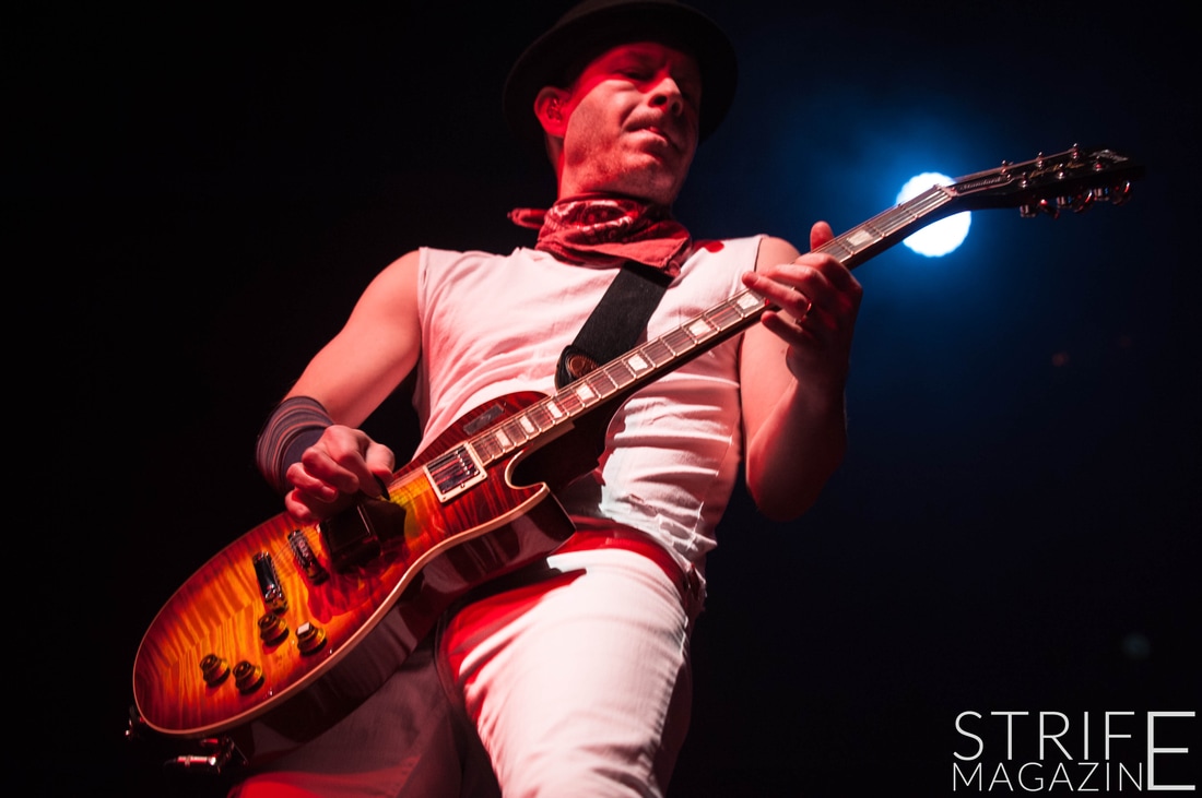‘In Too Deep’ unfortunately meant the end of the set, resulting in the band submerging from the stage for a bit for a piano to be rolled on stage. After a few minutes, only frontman Deryck Whibley emerged back on stage to perform emotional track from ‘Screaming Bloody Murder’ ‘Crash’. As the piano was already there, Whibley played a second track on it aswell, this one being ‘Pieces’. Halfway through the track, the remaining members came back on stage, supporting Whibley into delivering the emotional track that is ‘Pieces’.